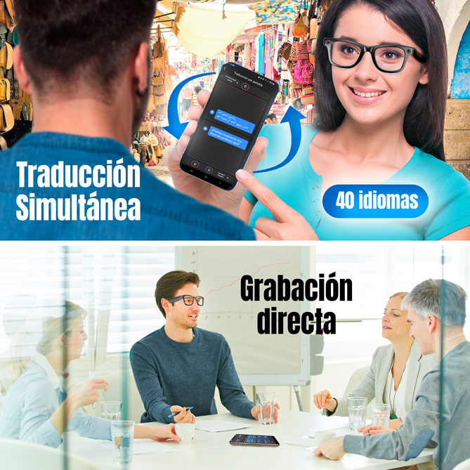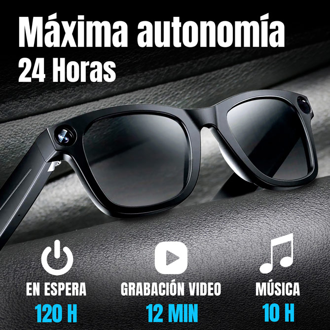 Ligeras, modernas y resistentes, podrás usarlas tanto en interior como en exterior porque incluyen 2 pares de lentes: unas transparentes y otras solares. Así, podrás usarlas tanto para grabar una reunión de trabajo como para hacer turismo: siempre tendrás al mejor “ayudante” a tu disposición.