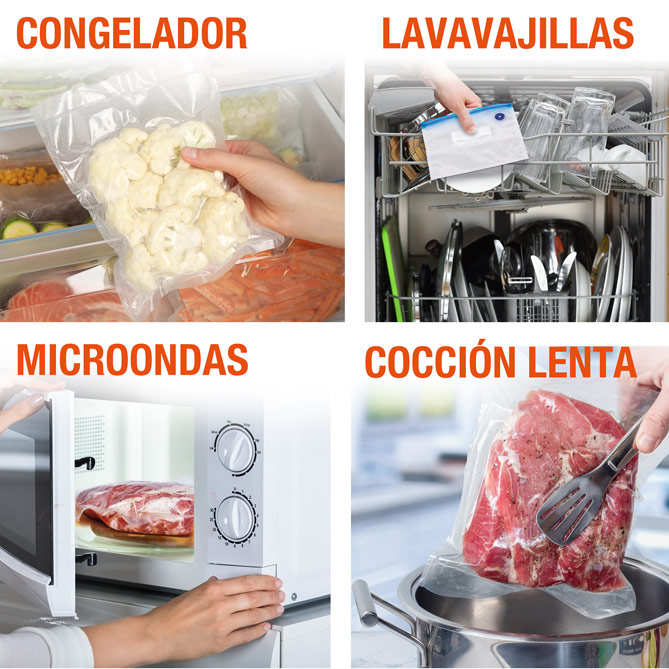 Ahorrarás también tiempo: es ideal para marinar alimentos en minutos, practicar la cocina a baja temperatura para hacer chuletas tiernas y sabrosas, costillas que se desharán en la boca o suculentos pescados. Además, podrás envasar al vacío medicamentos, joyas, fotos... ¡y es perfecta para hacer hielo! ¡Seguro que estás deseando probarla ya!