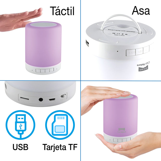 Disfruta de tu biblioteca de música y tus emisoras de radio favoritas en cualquier lugar con esta Lámpara-Altavoz portátil, sin cables y con cómodo control táctil. De diseño elegante y actual, te ofrece la máxima calidad de sonido, se conecta al móvil mediante Bluetooth para que incluso puedas utilizarla como manos libres y, además, tiene 6 colores de suave luz ambiente: es ideal para crear un entorno relajante que ayuda a descansar mejor… Y gracias a nuestra Oferta, ahora puedes conseguirla ¡con un 25% de Descuento!