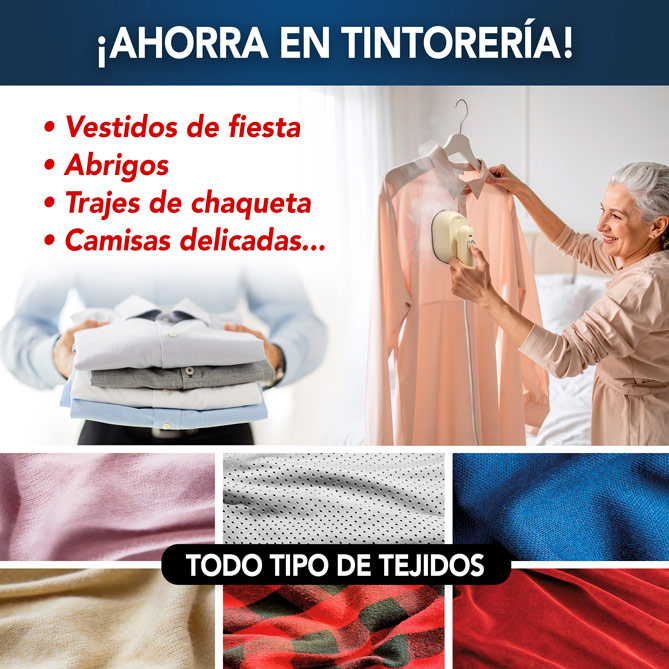 Puedes usarla cómodamente sobre una cama, una mesa o incluso directamente sobre la percha, sin necesidad de sacar la tabla de planchar. Solo tienes que llenar el depósito de agua, enchufarla ¡y listo!