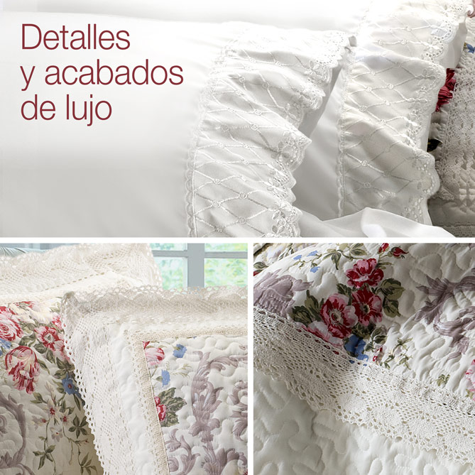 Irresistible y de refinada elegancia, BELLE ROSE impresiona por sus cuidados acabados, que nos hablan de su calidad. Porque a este exclusivo Conjunto de Cama no le falta ni un detalle: sus espectaculares Sábanas son una belleza; sus Cojines decorativos, añaden el toque de confort y moda, su suave Colcha es un sueño… ¿A que ya te ves soñando en él?