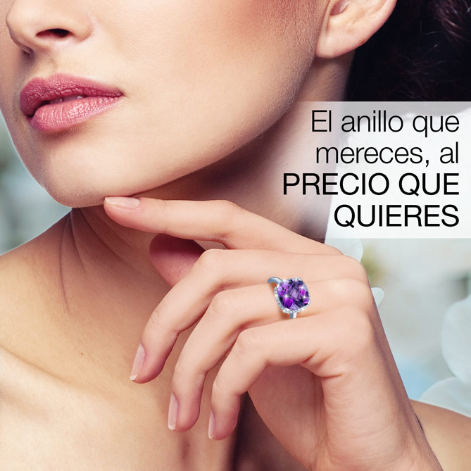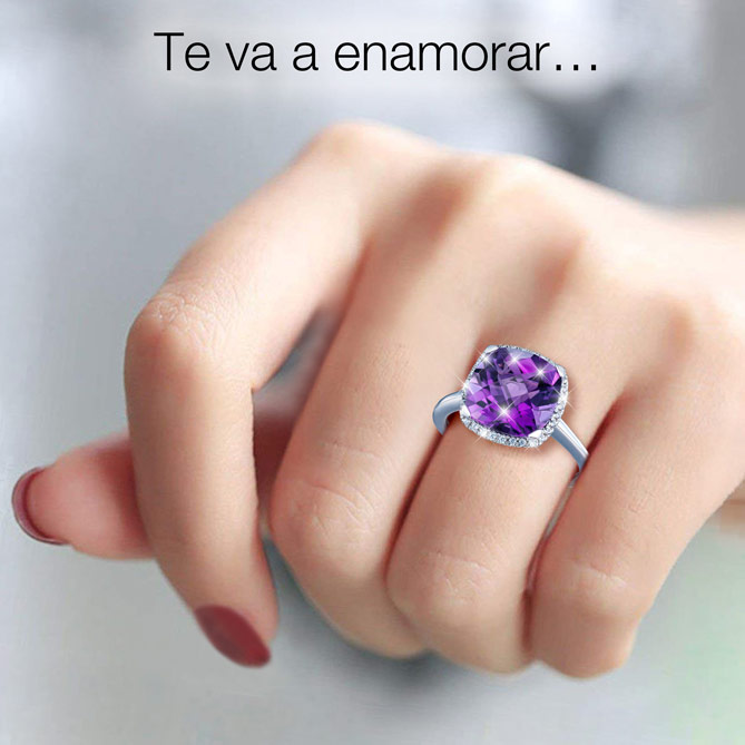 Ideal como Anillo de compromiso, para celebrar un aniversario especial o como ese capricho que te mereces: una joya preciosa de Amatista y Diamantes que te acompañará siempre, llenándote de luz cada día. Disfruta del lujo de verla brillar en tu mano porque, ahora, ¡puede ser tuya en unas condiciones irrepetibles!