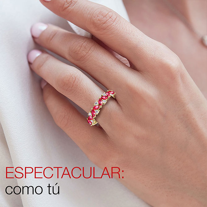 Los Anillos de Oro amarillo de 1ª Ley como Rivière de Rubíes son la gran tendencia del año: realzan cualquier look y aportan un toque super chic a mujeres de cualquier edad. Por eso, este es el Anillo perfecto: la clásica joya que madres e hijas comparten ¡porque queda fenomenal en el día a día y brilla en las ocasiones más especiales!
