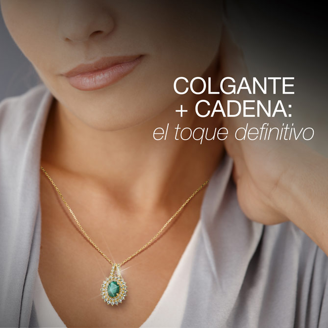 Misteriosa y bella, la Esmeralda, que ha fascinado a las mujeres más elegantes de todos los tiempos, siguen de absoluta actualidad y por eso es la protagonista de cada una de las piezas de este Conjunto. Femenino y muy favorecedor, sus posibilidades son infinitas porque las Piedras Preciosas auténticas se adaptan -¡y resaltan!- cualquier look… El Colgante con su Cadena a juego es tan delicado como bello; los Pendientes son pura elegancia y el Anillo es, simplemente, imprescindible: ideal para el ”día a día” y sublime en las citas más señaladas.