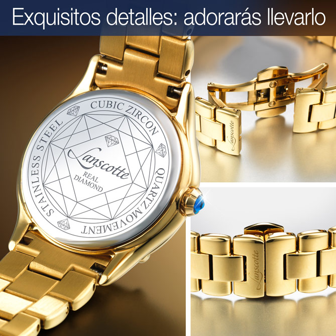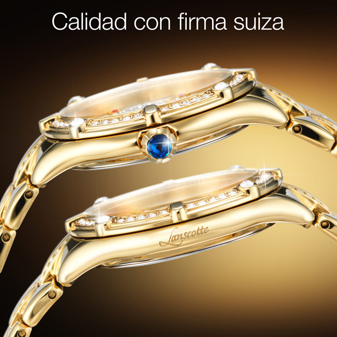 El tiempo hecho arte, la máxima expresión del lujo... Sublime en sus líneas, puras y muy femeninas, la nueva creación de la prestigiosa firma suiza Lanscotte convierte el trivial gesto de mirar la hora en el espectáculo más bello del mundo, con toda la luz y el color de las Piedras Preciosas y Semipreciosas que decoran cada centímetro del Reloj: Zafiros, Rubí, Esmeralda, Diamante, Aguamarina... deslumbrando sobre Acero bañado en Oro de 1ª Ley IPG. ¿Te imaginas lo maravillosa que vas a estar con él?
