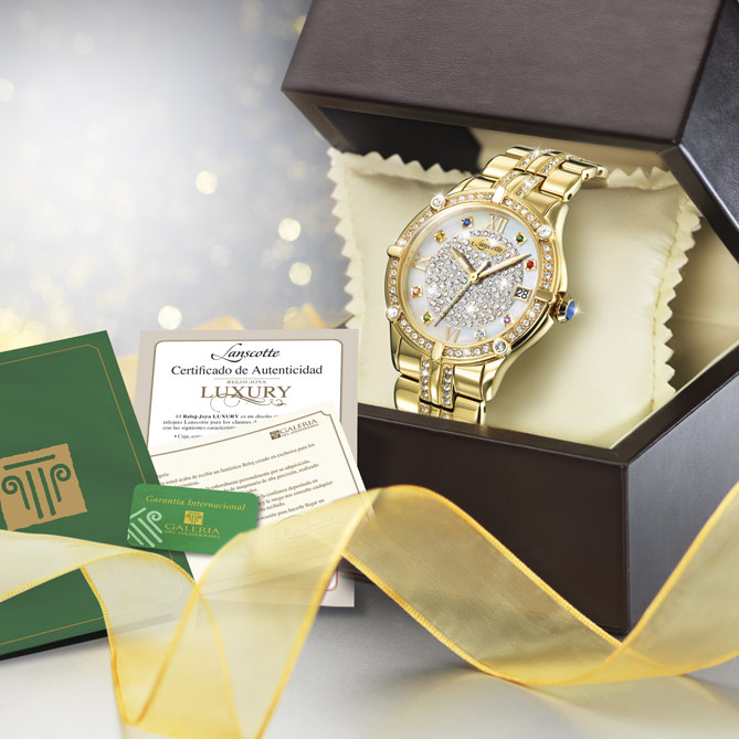 ¿Y si el auténtico lujo fuera no tener que elegir? LUXURY es Alta Relojería femenina que lo tiene todo: un cuidado diseño, calidad con firma suiza y la selección de materiales más deseados, un festival sinfín de Piedras Preciosas y Semipreciosas: Zafiros, Rubí, Esmeralda, Diamante, más de 200 Circonitas, Amatista, Aguamarina... Gemas perfectas, pletóricas de luz y color, que deslumbran en una creación en Acero 316L, Quirúrgico y Antialérgico, bañado en Oro de 1ª Ley IPG, con dial de Madreperla, de infinitos matices. Es un lujo a tu alcance, el Reloj que mereces lucir cada día.