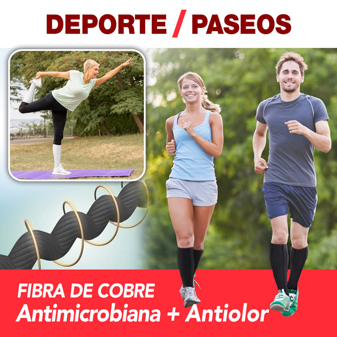 Las Medias de Compresión Sankom están fabricadas con fibras de cobre de acción antimicrobiana, que ayudan a mantener los pies sanos, frescos y sin malos olores incluso tras largas jornadas. A diferencia de las medias de compresión convencionales, mantienen su eficacia y sujeción con el paso del tiempo.