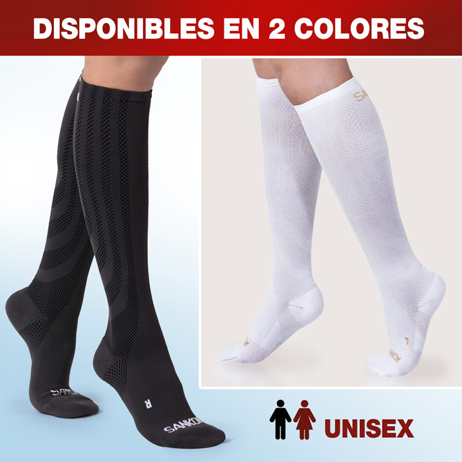 Pide ahora tus Medias de Compresión Sankom en blanco o negro a un precio increíble. Y si compras 2 pares, recibirás un tercero ¡gratis! No dejes pasar esta oportunidad única.